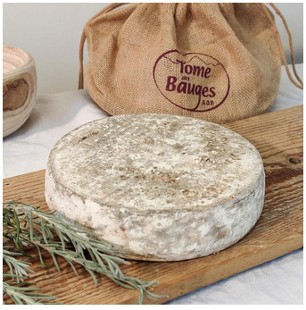 Fromage au lait cru entier de vache. Sous son aspect rustique à la nature authentique, la Tome des Bauges avec sa croûte grise, irrégulière et fleurie, cache une pâte claire, de couleur jaune à ivoire. Elle développe des arômes lactiques, de beurre, et un goût très légèrement acide.